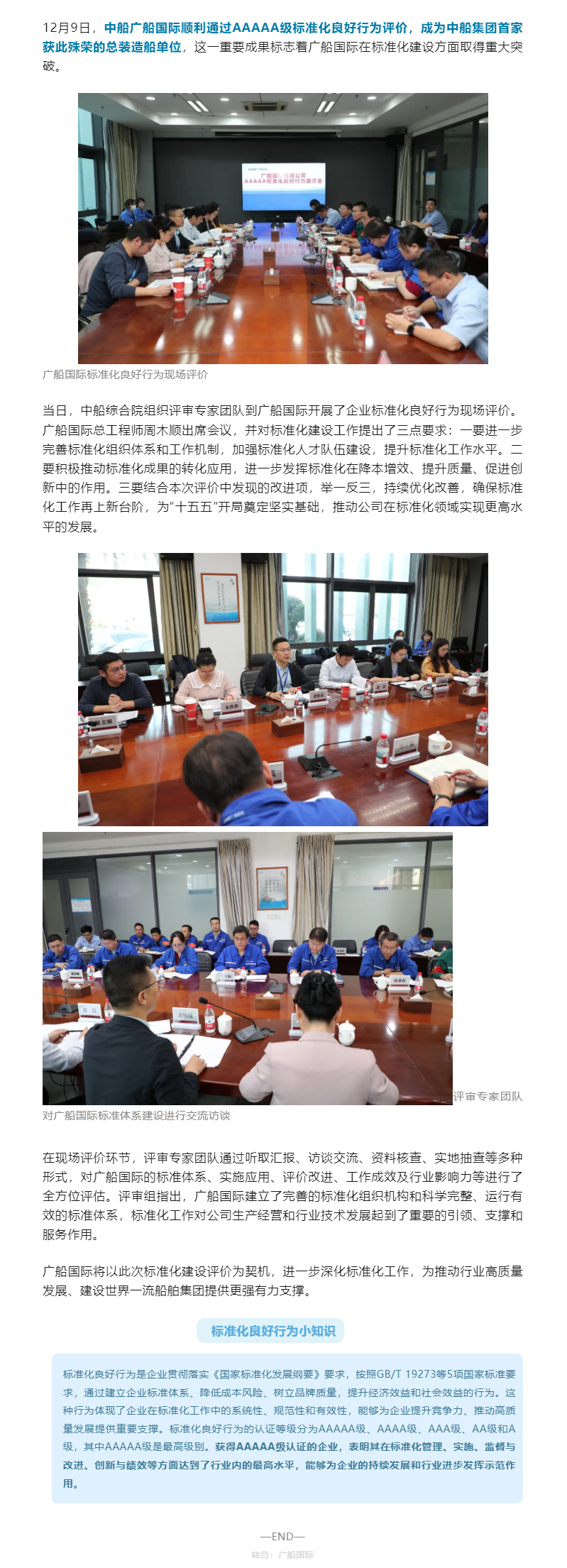 首家!我会理事单位中船广船国际顺利通过AAAAA级标准化良好行为评价