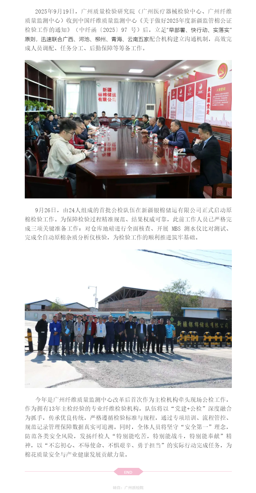 我会副理事单位广州质量检验研究院(广州医疗器械检验中心、广州纤维质量监测中心)赴新疆开展2025年度新疆监管棉现场