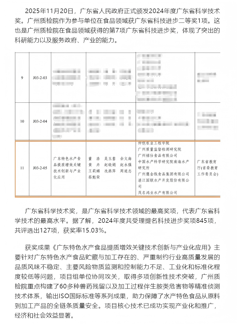 喜报!我会理事单位广州质检院再获1项广东省科技进步奖