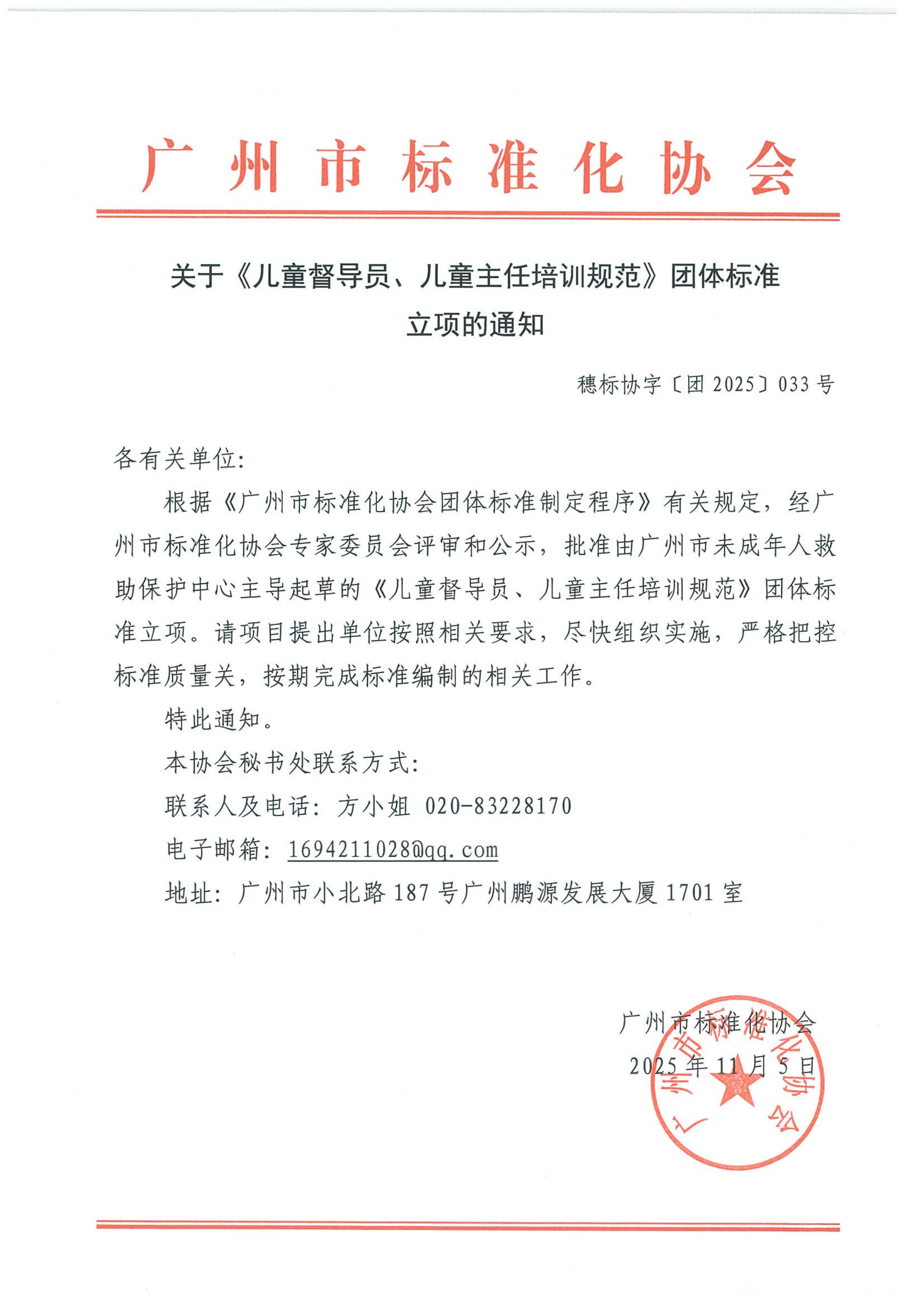 关于《儿童督导员、儿童主任培训规范》团体标准立项的通知