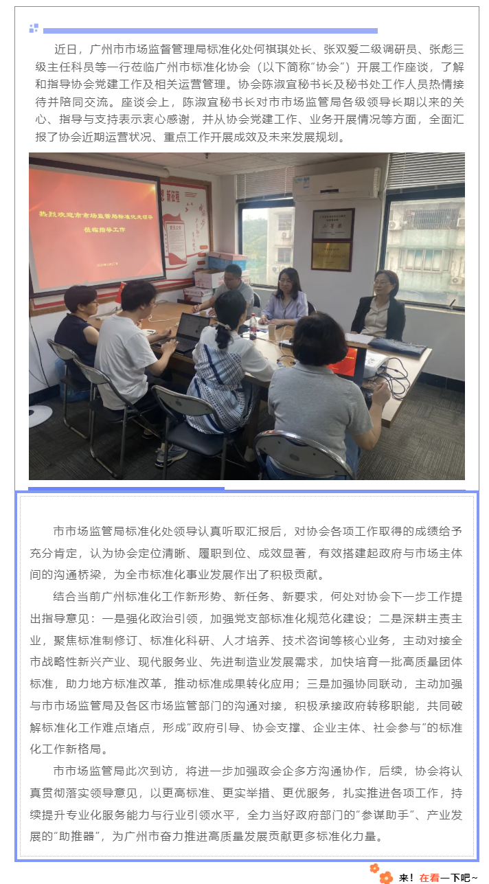 市市场监管局标准化处领导到广州市标准化协会开展业务指导工作