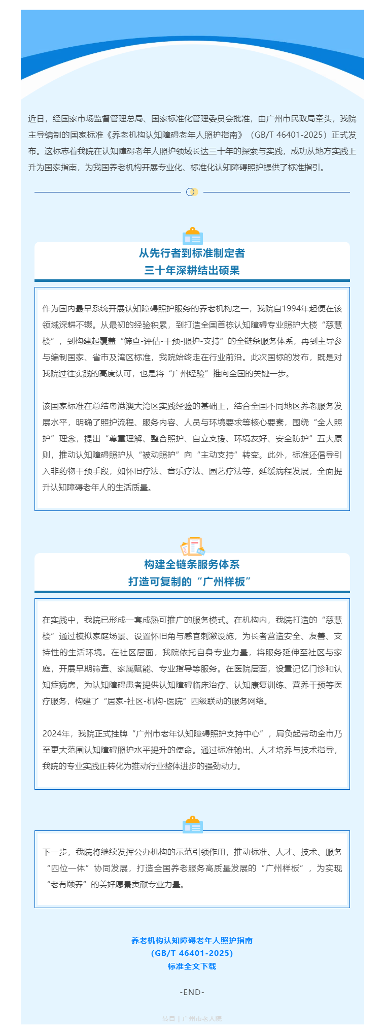 我会理事单位市老人院牵头编制的认知障碍老年人照护国家标准正式发布