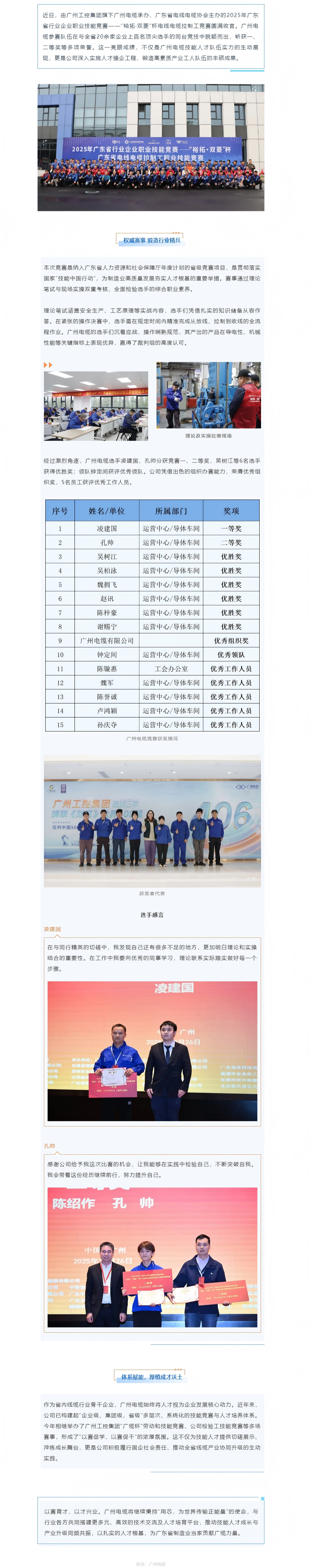 以赛育才 以才兴业 _ 我会理事单位广州电缆承办省级技能竞赛并斩获佳绩