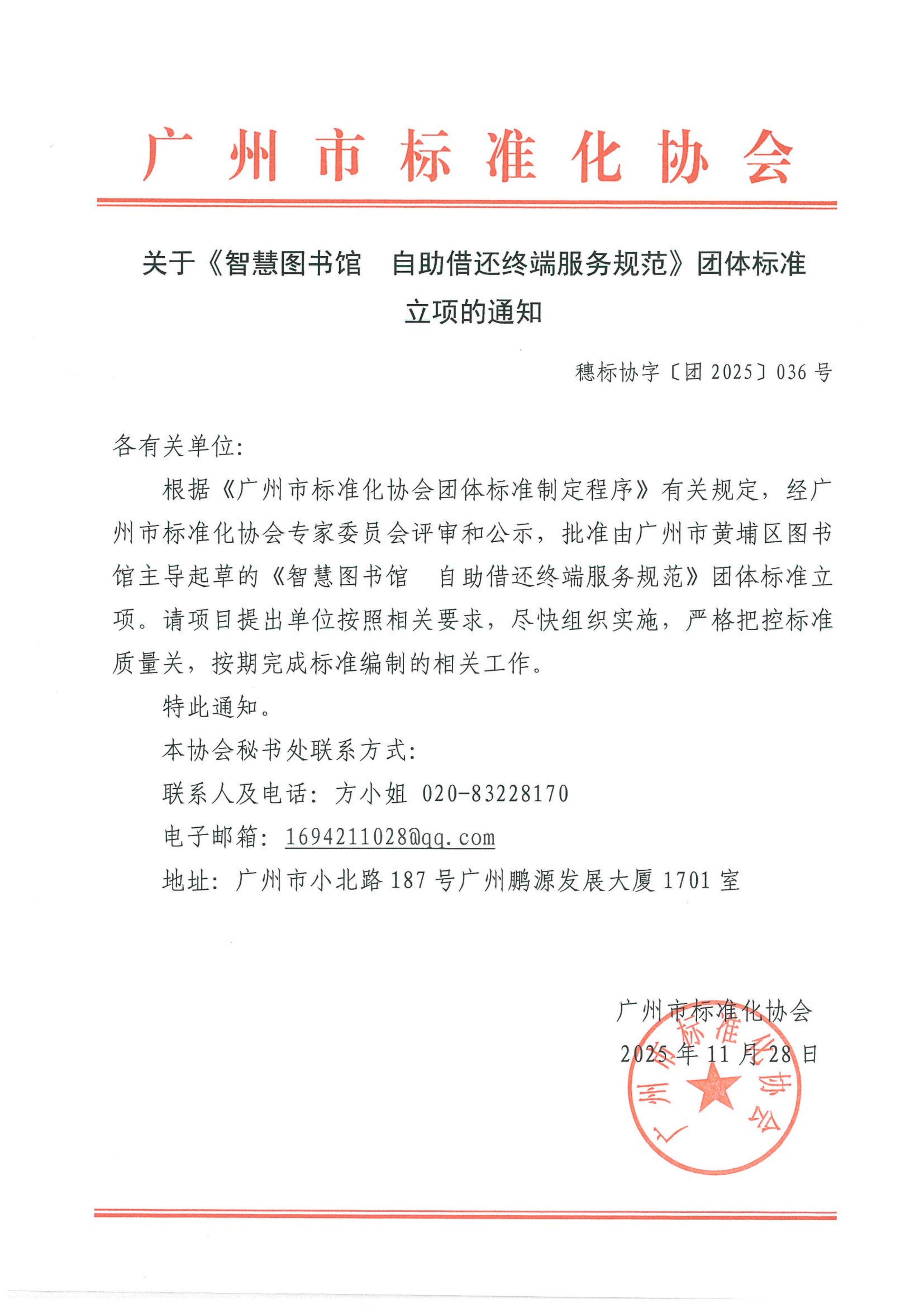 关于《智慧图书馆 自助借还终端服务规范》团体标准立项的通知