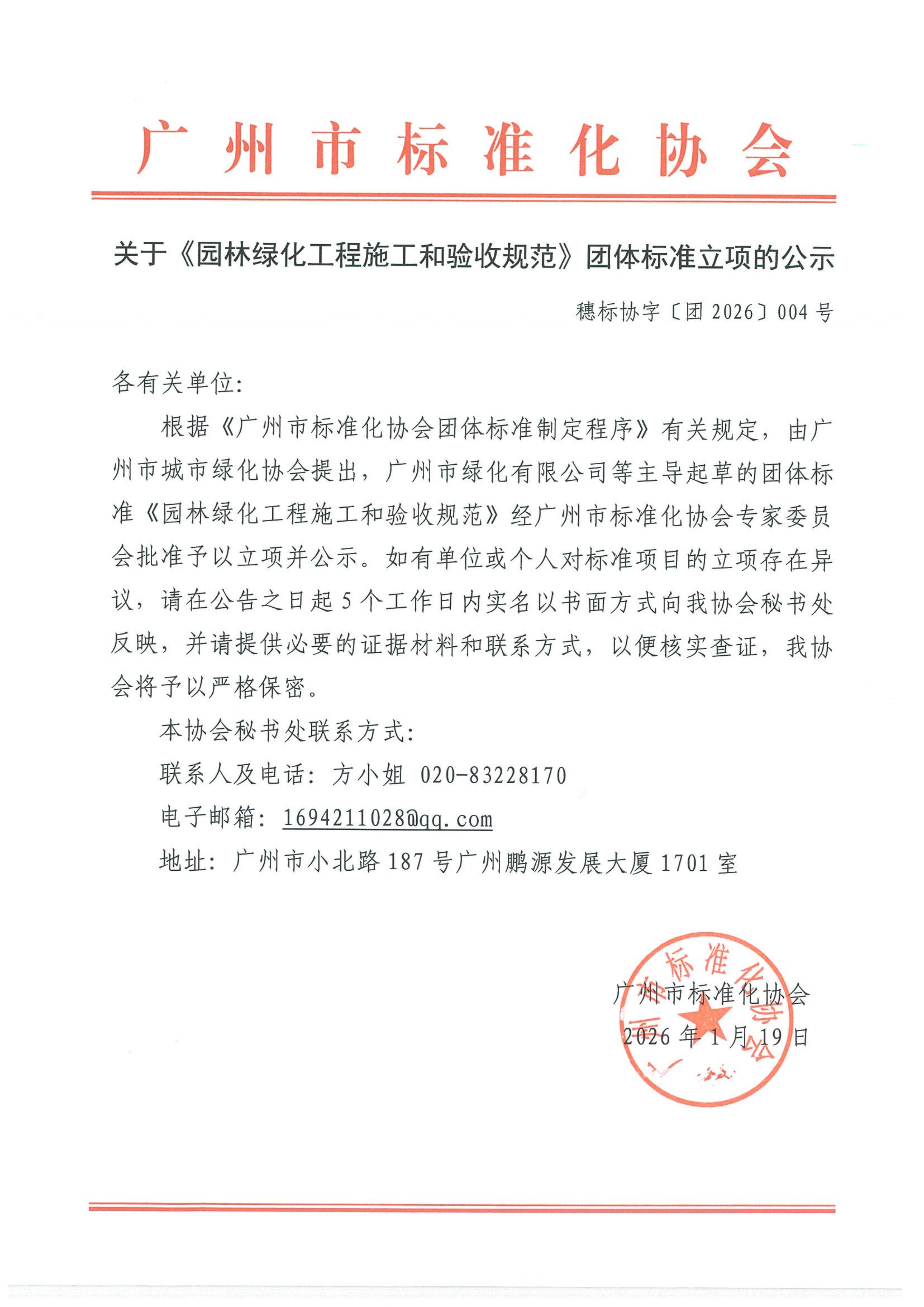 关于《园林绿化工程施工和验收规范》团体标准立项的公示