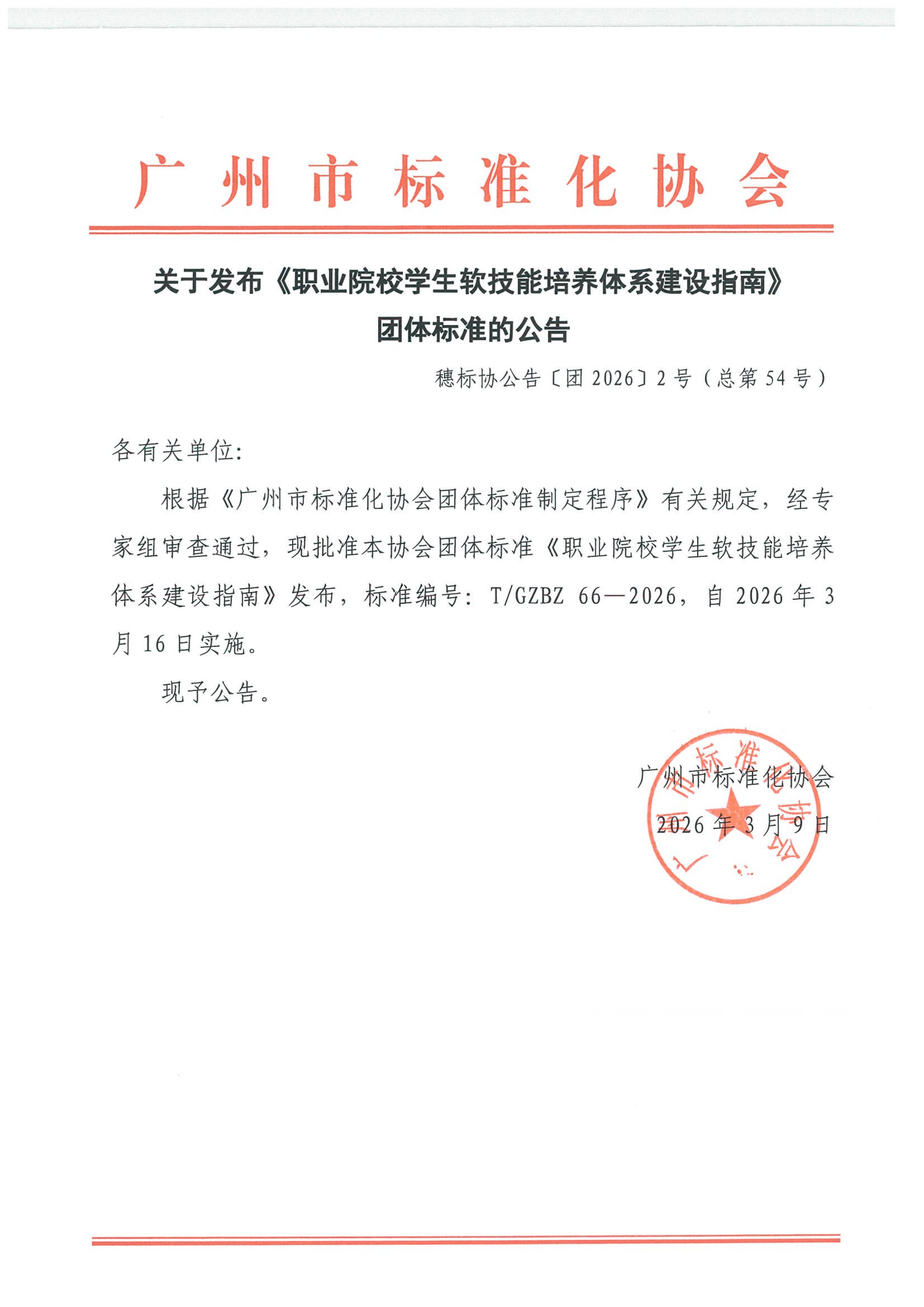关于发布《职业院校学生软技能培养体系建设指南》团体标准的公告