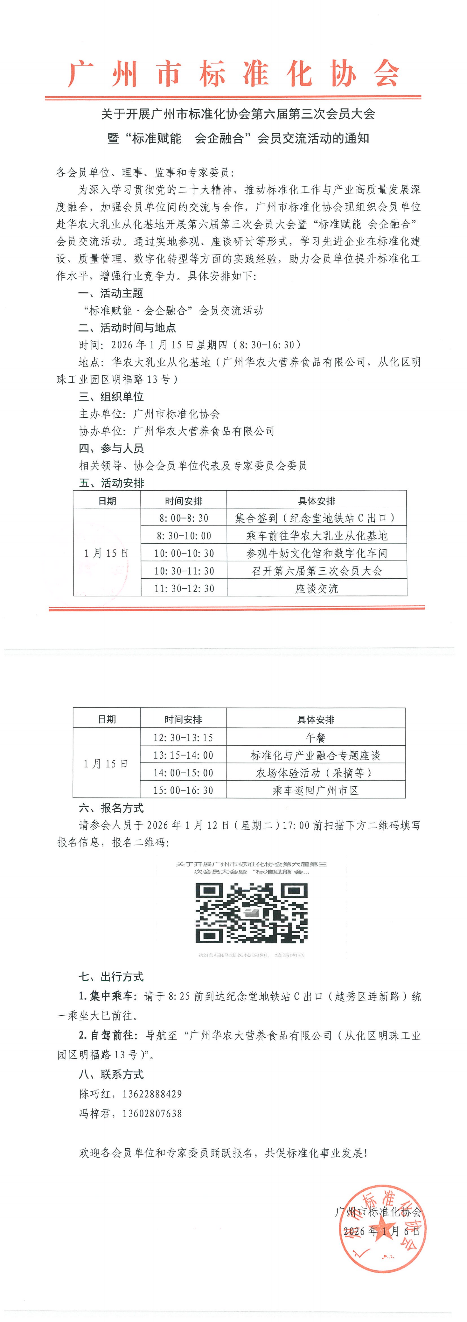 关于开展广州市标准化协会第六届第三次会员大会暨“标准赋能 会企融合”会员交流活动的通知